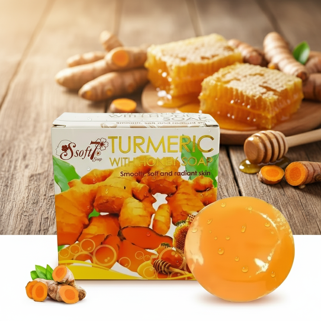 صابون S SOFT 7 با عصاره زردچوبه و عسل با بهرهگیری از خواص طبیعی زردچوبه و عسل، به بهبود وضعیت پوست کمک میکند.